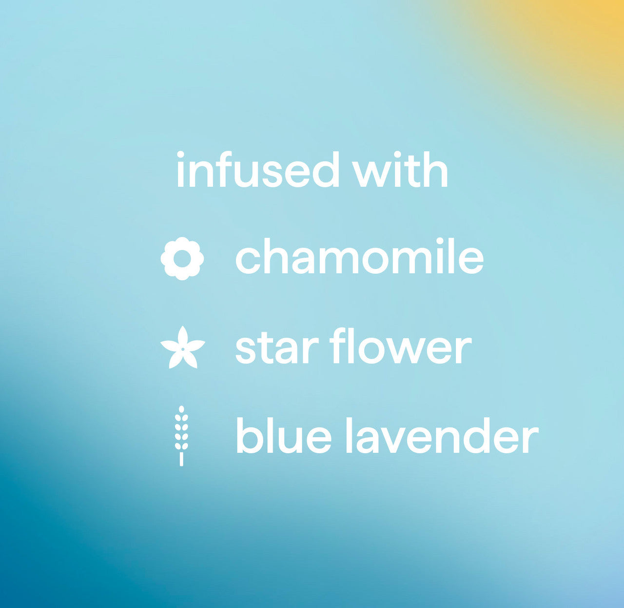 - infused with chamomile. starflower + blue lavender.